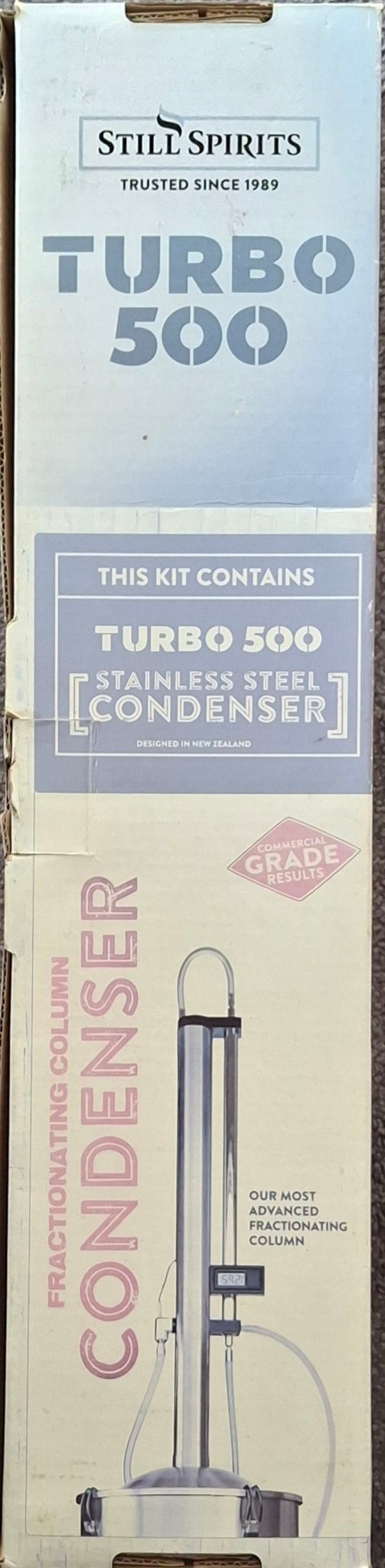 1 x KIT- Still Spirits T500 Stainless Condenser & Boiler that is an older product and has shop soiled packaging. No warranty is offered.
